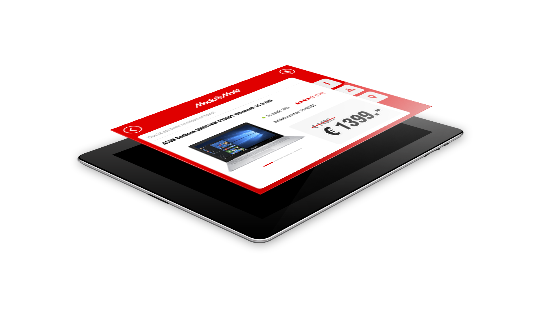 A hybrid app on a tablet mounted on a life size board standee